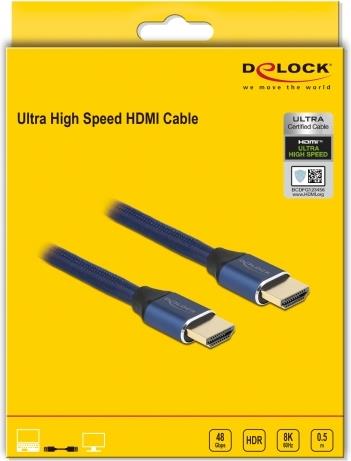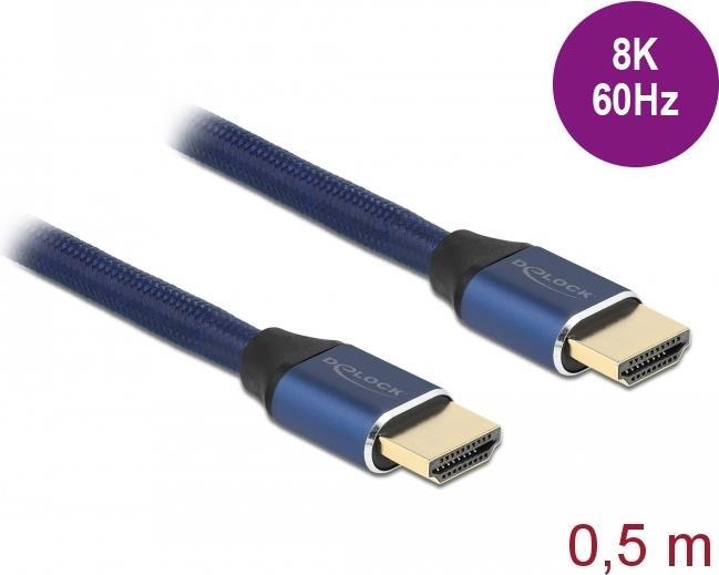 Delock - Ultra High Speed - HDMI-Kabel - HDMI männlich zu HDMI männlich - 50cm - Dreifachisolierung - Blau - hauchvergoldete Kontakte, unterstützt 8K 60 Hz (7680 x 4320) (85445)