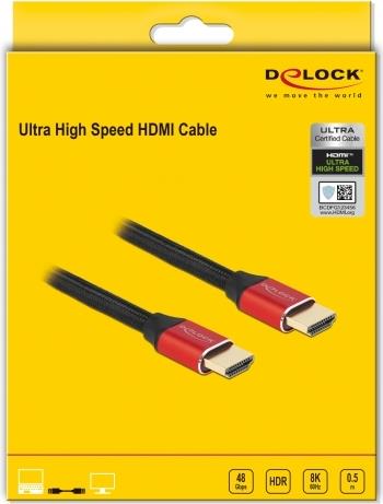 Delock - Ultra High Speed HDMI-Kabel - HDMI männlich bis HDMI männlich - 50cm - Dreifachisolierung - Rot - hauchvergoldete Kontakte, unterstützt 8K 60 Hz (7680 x 4320) (85772)