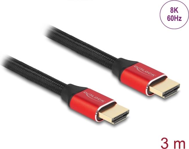Delock - Ultra High Speed HDMI-Kabel - HDMI männlich bis HDMI männlich - 3,0m - Dreifachisolierung - Schwarz, Rot - hauchvergoldete Kontakte, unterstützt 8K 60 Hz (7680 x 4320) (85775)