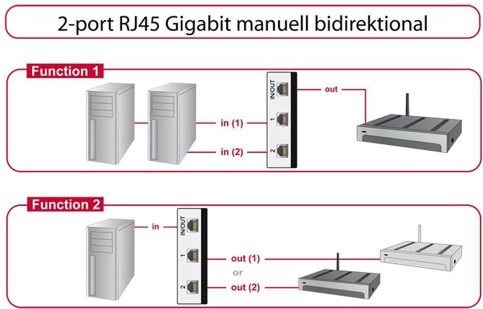 Delock Umschalter RJ45 10 Gbps 2 Port manuell bidirektional (87673)