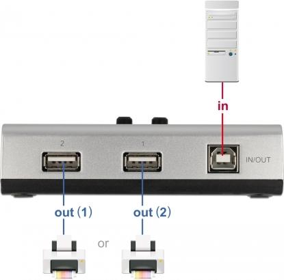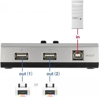 Dieser bidirektionale USB 2.0 Umschalter von Delock bietet einem Computer die Möglichkeit zwei USB Peripheriegeräte zu verwenden. Mit den beiden Tasten am Umschalter kann der Computer eine USB Verbindung zum gewünschten Peripheriegerät herstellen. Drucker, Kartenleser, Festplatten usw. können so gezielt aktiviert und verschiedenen Anwendungen zur Verfügung gestellt werden.