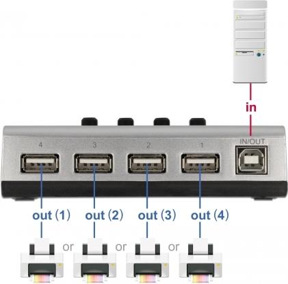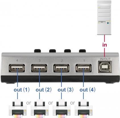 Dieser bidirektionale USB 2.0 Umschalter von Delock bietet einem Computer die Möglichkeit vier USB Peripheriegeräte zu verwenden. Mit den vier Tasten am Umschalter kann der Computer eine USB Verbindung zum gewünschten Peripheriegerät herstellen. Drucker, Kartenleser, Festplatten usw. können so gezielt aktiviert und verschiedenen Anwendungen zur Verfügung gestellt werden.