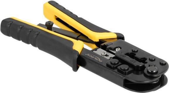 Die Multifunktionszange eignet sich zum Crimpen, Abisolieren und Schneiden von 8P (RJ45) oder 6P (RJ12/11) Steckern und Kabeln.