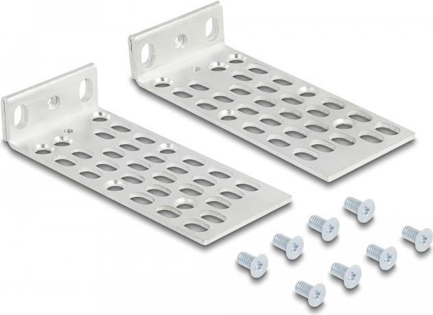 Dieses Montageset von Delock kann für den Einbau verschiedener Geräte wie z.B. eines Switches in 10" oder 19" Racks und Wandschränken verwendet werden.