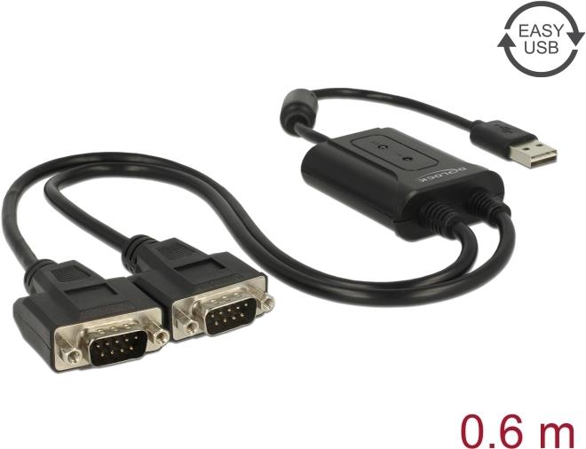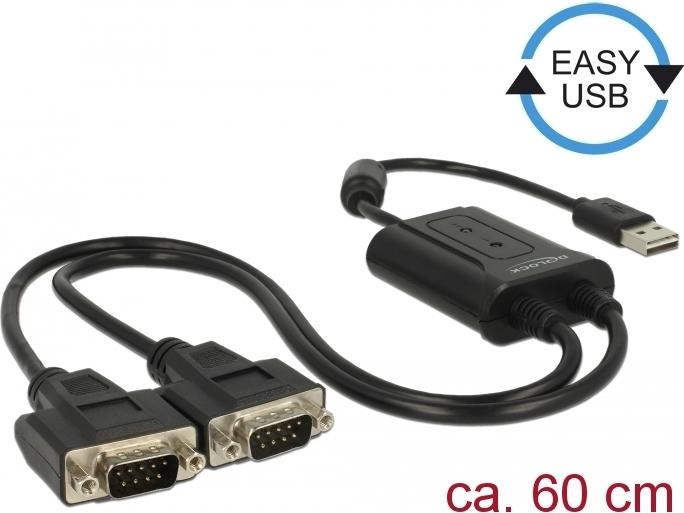 DeLock USB 2.0 to 2 x serial RS-232 - Serieller Adapter |