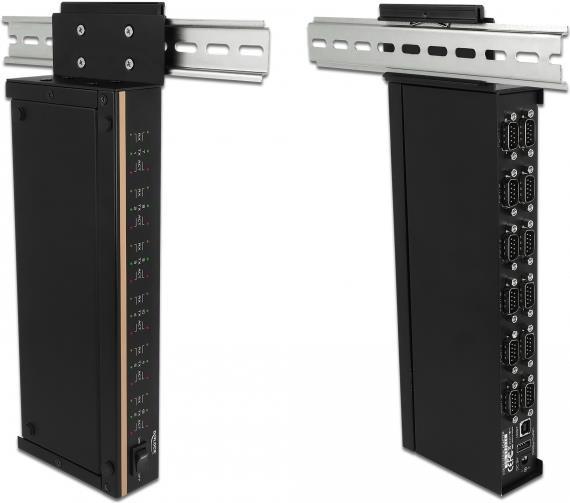 Dieser kompakte RS-232 Hub mit High Speed USB 2.0 zu 12 x RS-232 Seriell von Delock bietet Anschlüsse für Drucker, Steuerungen, Messgeräte etc. Es können bis zu vier dieser Hubs kaskadiert (Hintereinanderschaltung) und somit bis zu 48 RS-232 Ports an einem USB 2.0 Anschluss zur Verfügung gestellt werden. Die LEDs an jedem der Ports informieren über den aktuellen RS-232 Status. Eine Windows Anwendung unterstützt die zentrale Kontrolle der seriellen COM Ports. Der Hub ist als Tischgerät und für die Wand- oder Hutschienenmontage geeignet.