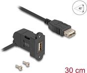 Delock USB 2.0 Typ-A Einbaubuchse 45° gewinkelt zu Buchse mit 30 cm Kabel (67152)