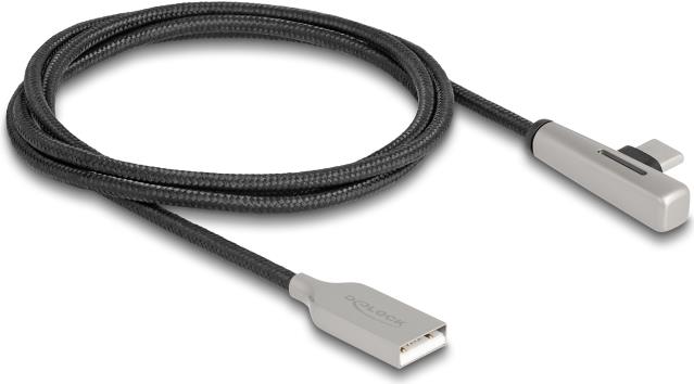 Delock USB 2.0 Kabel Typ-A Stecker zu USB Type-C™ Stecker gewinkelt mit LED und Schnellladefunktion 60 W 1 m (80766)
