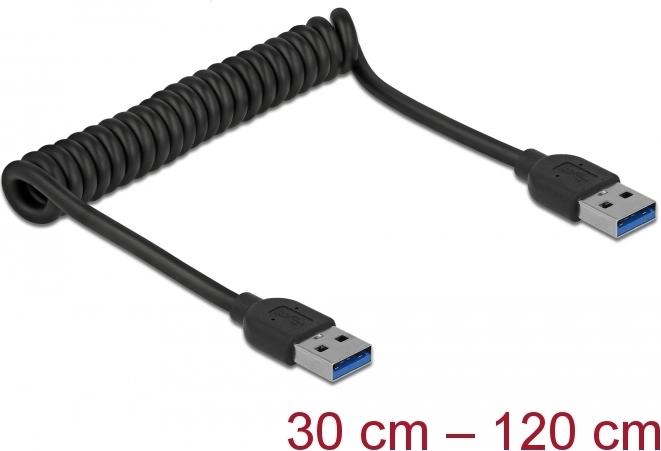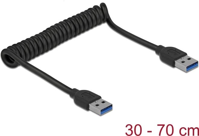 DeLOCK USB3.0 Coiled Cable Type-A male to Type-A male - Linkkabel - USB3.0 - USB3.0 x 1 - Schwarz (85348)