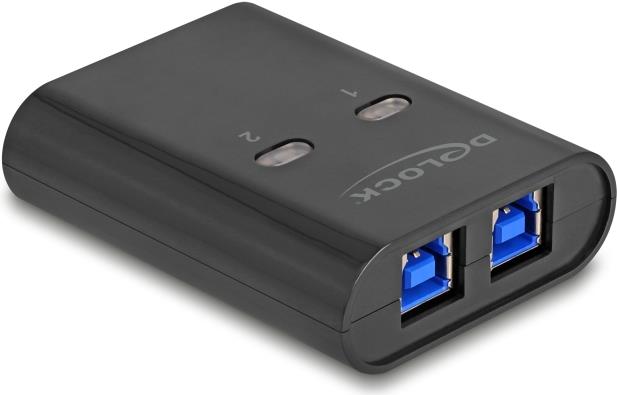Der Delock USB-Switch ermöglicht es, ein einzelnes USB-Gerät an zwei PCs anzuschließen, was den Komfort und die Effizienz Ihres Arbeitsplatzes erhöht. Mit einer Datenübertragungsrate von 5 Gbit/s gewährleistet er eine schnelle und zuverlässige Datenverwaltung zwischen den Geräten. Seine zwei USB-Typ-A-Eingänge und ein Typ-B-Ausgang ermöglichen nahtlose und unkomplizierte Verbindungen. Die Plug-and-Play-Funktion ermöglicht eine einfache Einrichtung ohne zusätzliche Treiber und ist somit benutzerfreundlich für alle, die Peripheriegeräte zwischen Computern gemeinsam nutzen möchten. Der kompakte Desktop-Formfaktor und das robuste Kunststoffgehäuse machen diesen USB-Switch zu einer praktischen Wahl für Heimbüros oder jeden anderen Raum, in dem mehrere Geräte Zugang zu einem einzigen USB-Anschluss benötigen. Statusanzeigen für PC1 und PC2 zeigen die aktive Verbindung an, sodass Benutzer wissen, welcher PC derzeit mit dem USB-Gerät verbunden ist. Dank der Bus-Power-Funktion benötigt er nur minimale Energie von den angeschlossenen Computern und sorgt so für einen aufgeräumten und organisierten Arbeitsplatz.