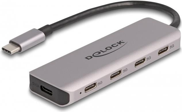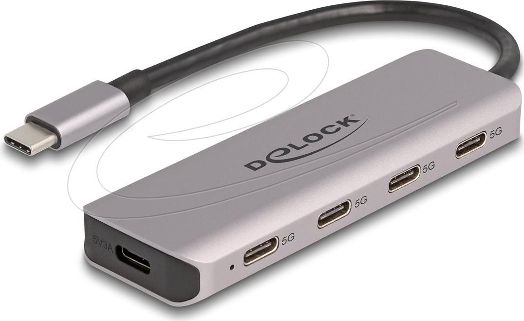 DeLOCK USB 5 Gbps 4 Port USB Type-C™ Hub mit USB Type-C™ Anschluss - USB 3.2 Gen 1 (3.1 Gen 1) Type-C - USB 3.2 Gen 1 (3.1 Gen 1) Type-C - 5000 Mbit/s - Grau - Metall - Rundkabel (64238)