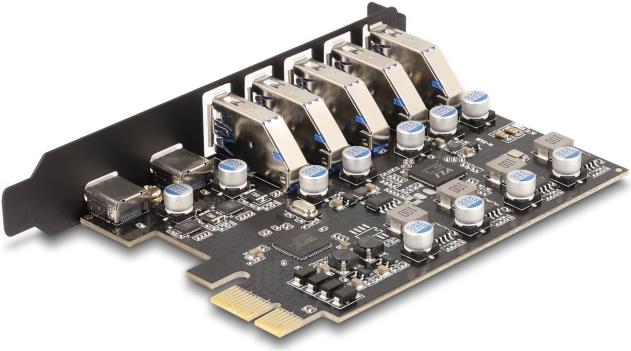 Der Delock USB-Adapter bietet mit seinem effizienten Steckkarten-Design eine vielseitige Lösung zur Erweiterung der Konnektivitätsoptionen. Mit insgesamt 5 USB-Anschlüssen und 2 USB-C-Anschlüssen ermöglicht dieser Adapter eine nahtlose Datenübertragung mit Geschwindigkeiten von 5 Gbit/s und gewährleistet eine schnelle und effektive Kommunikation zwischen Geräten. Er entspricht den xHCI 1.1-Standards und bietet Unterstützung für das USB Attached SCSI Protocol (UASP), was eine verbesserte Leistung und bootfähige Funktionen ermöglicht, damit Ihr System reibungslos läuft. Dieser PCI Express 2.0 x1 Bustyp-Adapter, der durch den Fresco Logic FL1100-Prozessor verbessert wurde, wurde für effektive kabelgebundene Verbindungen entwickelt und ist somit die ideale Wahl für die Aufrechterhaltung der Konnektivität zwischen verschiedenen Geräten. Ob Sie Peripheriegeräte hinzufügen oder Dateien übertragen, der Delock-Adapter bietet zuverlässige Leistung in einem kompakten und effizienten Formfaktor.