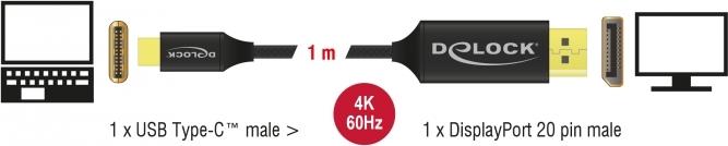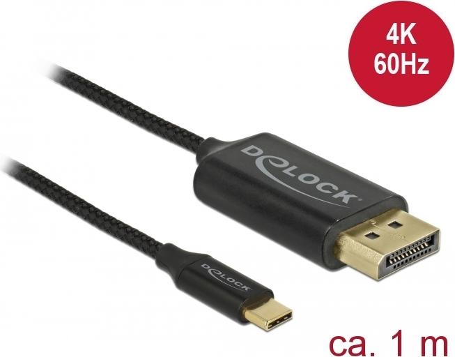 DeLOCK - Videoschnittstellen-Converter - DisplayPort / USB - USB-C (M) bis DisplayPort (M) - 1 m - Schwarz - 4K Unterstützung