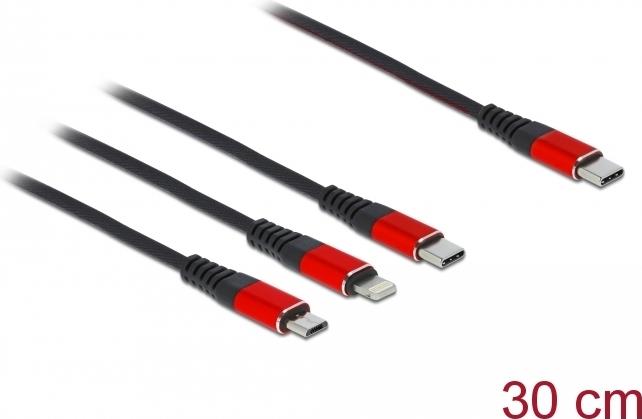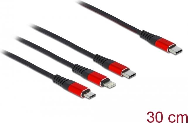 Delock 7,60cm (3") 1 - Kabel nur zum Laden - 24 pin USB-C männlich zu Micro-USB Typ B, Lightning, 24 pin USB-C männlich - 30cm - Schwarz (86710)