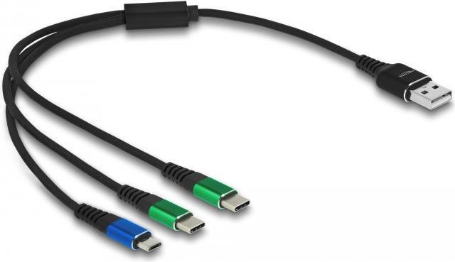 Delock - USB-Kabel - USB (nur Strom) (M) zu Mikro-USB Typ B (nur Strom), USB-C (nur Spannung) (M) 3 A - 30cm - Schwarz (87883)