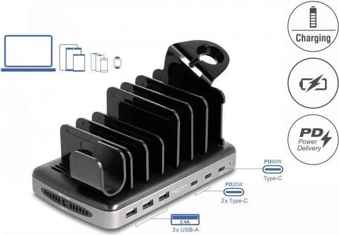 | Produktbeschreibung | Delock Ladestation - + AC-Netzteil - 3 x USB Typ A, 3 x USB-C - 112 Watt |