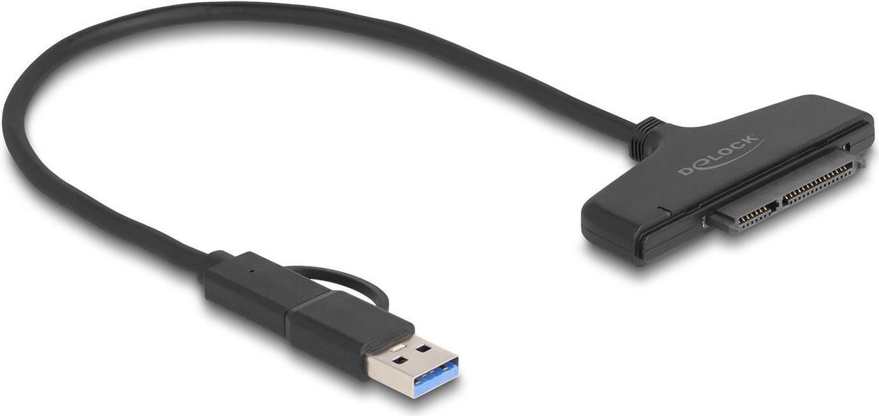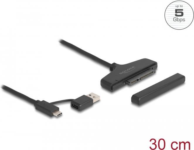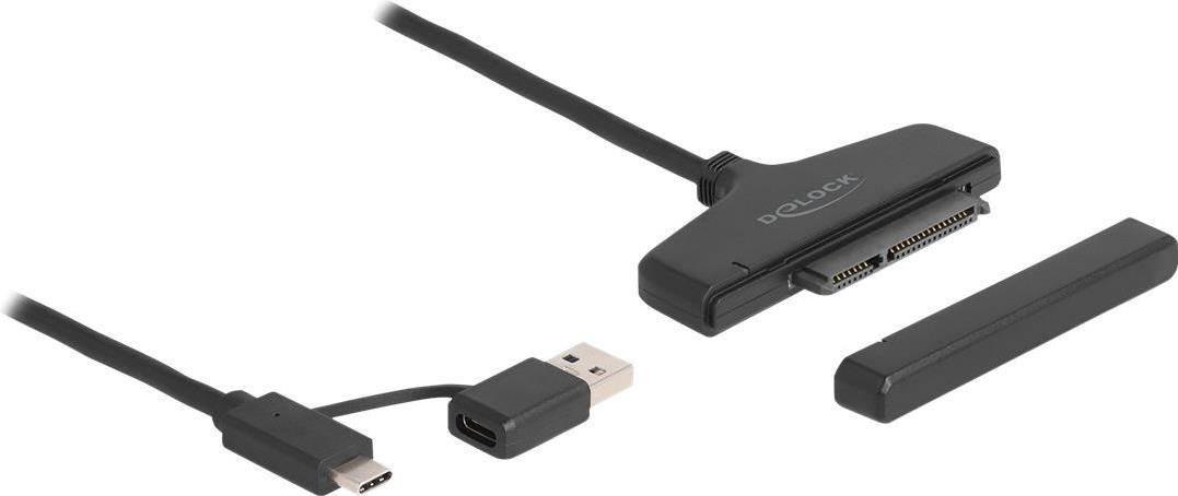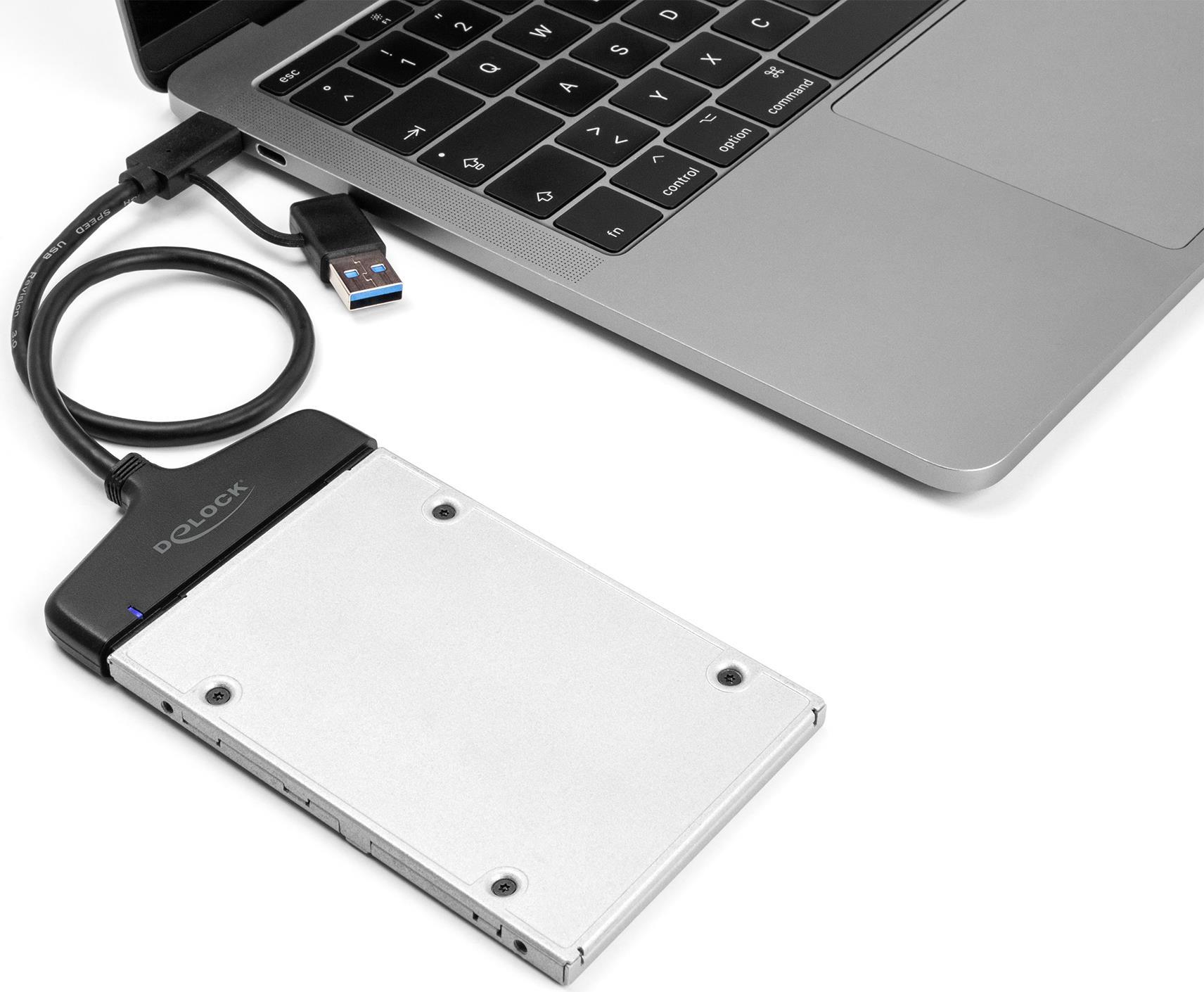 Dieser Delock-Konverter kann über eine USB-C oder USB Typ-A Schnittstelle an einen PC oder Laptop angeschlossen werden. So kann eine 2,5" SATA HDD oder SSD mit einer 22-poligen SATA-Schnittstelle verwendet werden.