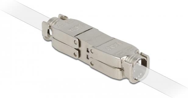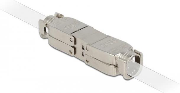 Mit diesem Verbinder von Delock können zwei Netzwerkkabel ohne Stecker verbunden werden, um sie zu verlängern oder zu reparieren.