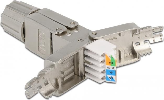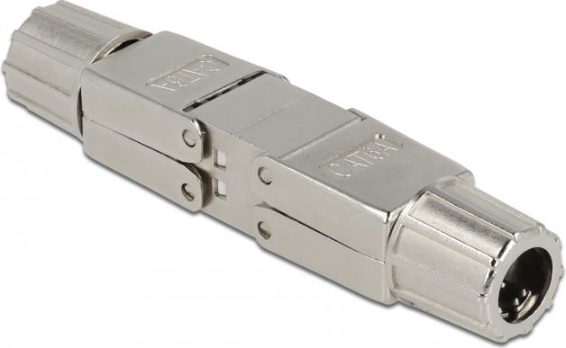 Mit diesem Verbinder von Delock können zwei Netzwerkkabel ohne Stecker verbunden werden, um sie zu verlängern oder zu reparieren.
