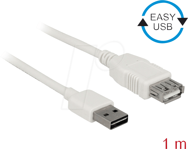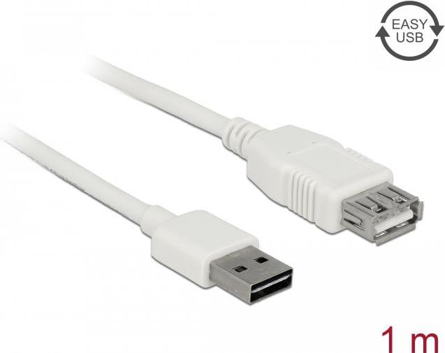 DeLOCK Easy - USB-Verlängerungskabel - USB (M) umkehrbar bis USB (W) - USB2.0 - 1,0m - weiß (85199)