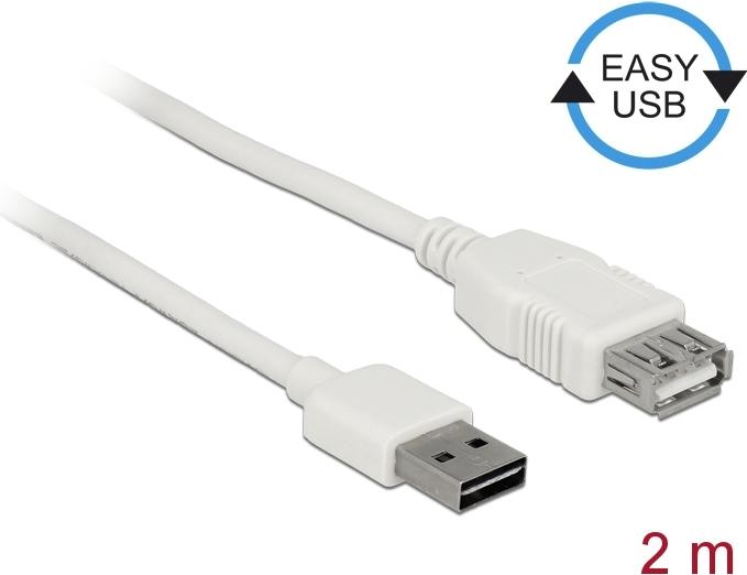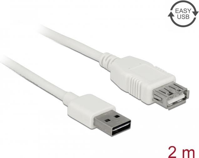 DeLOCK Easy - USB-Verlängerungskabel - USB (M) umkehrbar bis USB (W) - USB2.0 - 2,0m - weiß (85200)