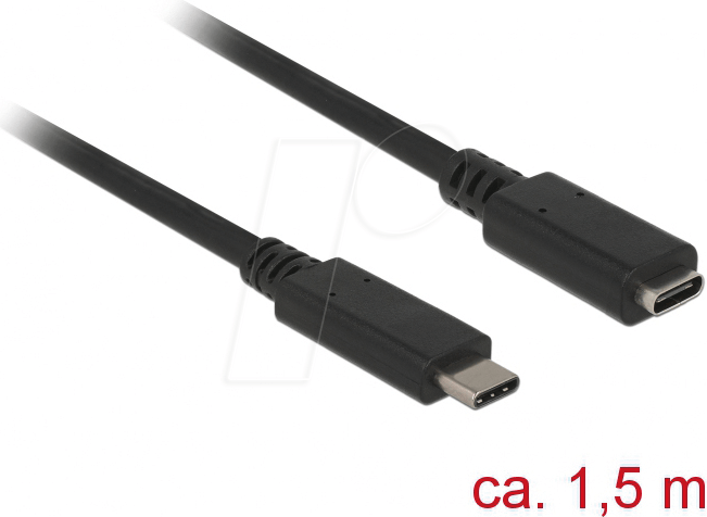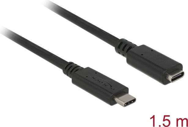 Delock Verlängerungskabel SuperSpeed USB (USB 3.1 Gen 1) USB Type-C™ Stecker > Buchse 3 A 1,5 m schwarz (85534)