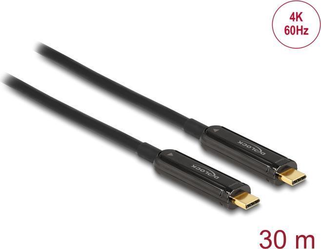 Delock - Video- / Audiokabel - USB-C männlich bis USB-C männlich - 30,0m - Glasfaser - Schwarz - Active Optical Cable (AOC), unterstützt 4K 60 Hz (3840 x 2160) (84132) (geöffnet)