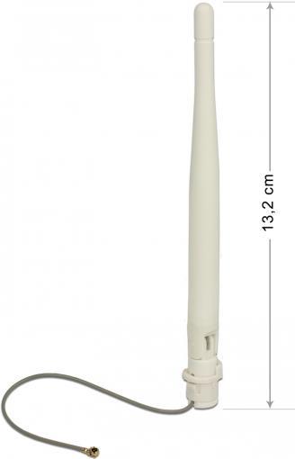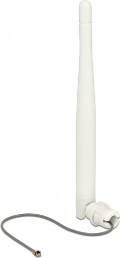 Delock WLAN 802.11 b/g/n Antenne MHF® I Stecker 3 dBi omnidirektional 1.13 12 cm flexibel Clip weiß (89619)