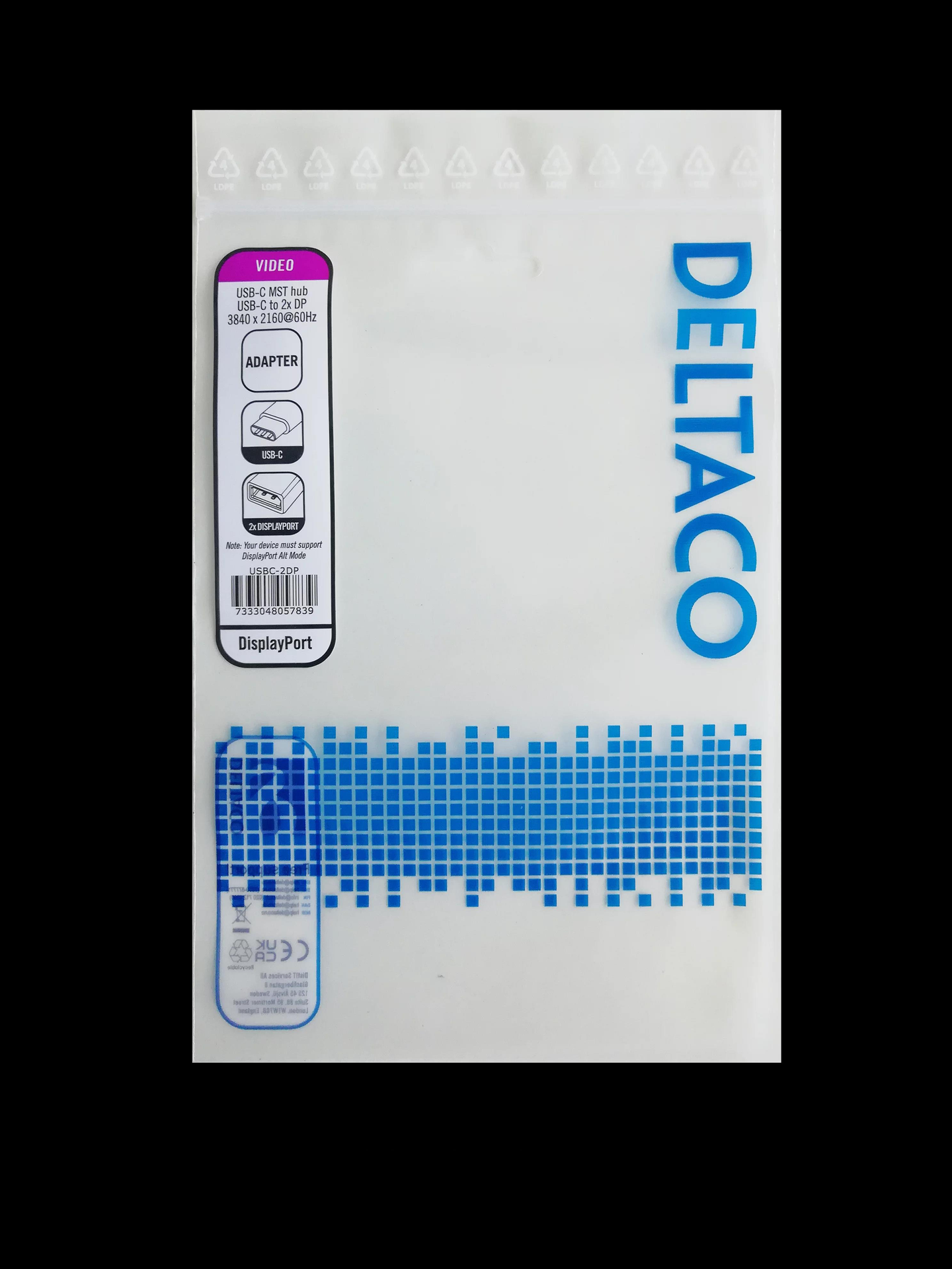 Deltaco USBC-2DP Videokabel-Adapter 0,1 m USB Typ-C 2 x DisplayPort Schwarz (USBC-2DP)