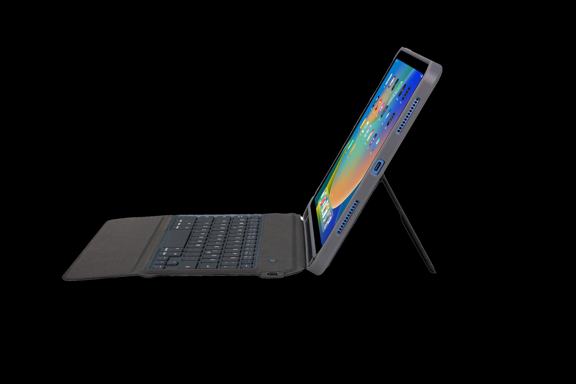 Die Deqster Slim 2 Tastatur und Folio-Hülle vereint Komfort und Funktionalität, um Ihr Tipperlebnis auf Apple iOS-Geräten zu verbessern. Mit seinem schlanken Design verfügt dieses Produkt über einen Stifthalter, damit Sie Ihr Schreibgerät immer griffbereit haben, sowie über einstellbare Blickwinkel für eine komfortable Nutzung. Die Sleep/Wake-Funktion sorgt für einen energieeffizienten Betrieb, sodass Sie die Akkulaufzeit schonen und Ihr Gerät dennoch jederzeit einsatzbereit ist. Diese kabellose Bluetooth-Tastatur verfügt über ein QWERTZ-Layout mit 64 Tasten und wurde für Benutzer entwickelt, die eine deutsche Tastaturbelegung bevorzugen. Die Kompatibilität mit Apple iOS erhöht die Nützlichkeit zusätzlich, da sie sowohl als schützende Folio-Hülle als auch als vielseitiges Eingabegerät dient und somit eine praktische Lösung für mobile Computeranwendungen darstellt.