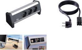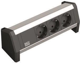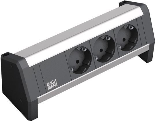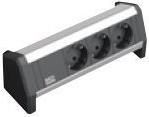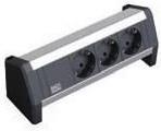 DESK ALU eloxiert 3 Schutzkontaktsteckdosen schwarz, Stromeingang: GST18 - Buchse, ohne Zuleitung (separat erhältlich), inkl. Haltewinkel und Schrauben (339.1002)