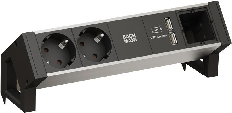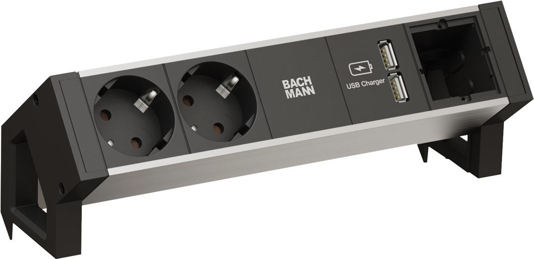 DESK2 ALU BLACK 1xABD 2xSchutzkontakt 1xUSBCharger (937.001)