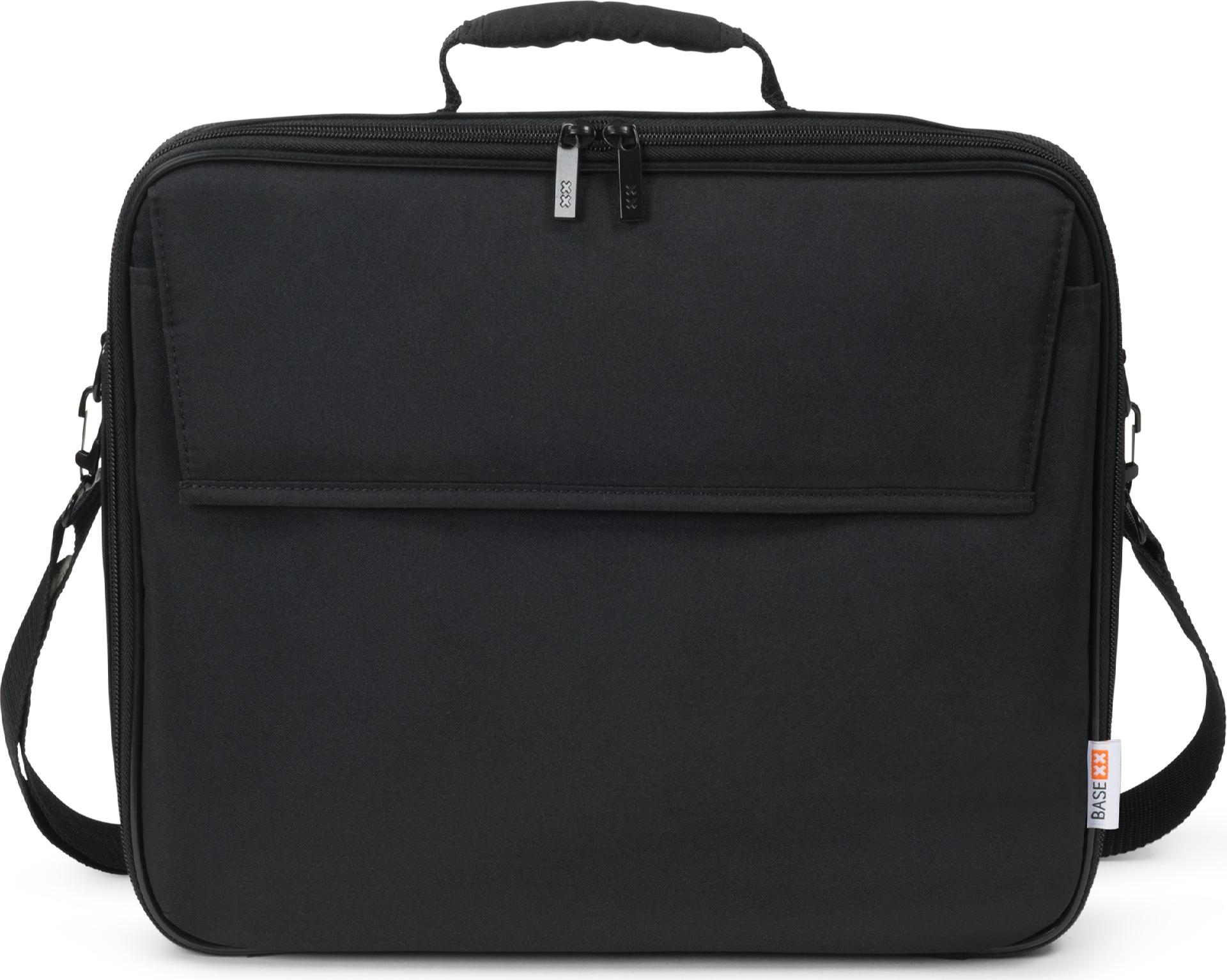 Produkttext[/head] Dicota BASE XX Laptop Bag Clamshell 13-14.1\" Black (D31794)Mit der BASE XX Clamshell-Tasche kommt Ihr Notebook sicher ans Ziel. Das Hauptfach ist mit einer besonders guten Polsterung versehen, welche Ihr Gerät rundum vor Stößen und Schlägen schützt.Dabei sorgt ein Befestigungsriemen für sicheren Halt ohne Verrutschen. Das Hauptfach bietet zudem Stauraum für Dokumente und persönliche Gegenstände. In der Vordertasche mit integrierter Workstation haben Sie mobiles Zubehör wie Smartphone, Visitenkarten, Stifte, etc. stets griffbereit. Der längenverstellbare, abnehmbare Schultergurt und die Handgriffe bieten angenehmen Tragekomfort.[head]Technische Daten