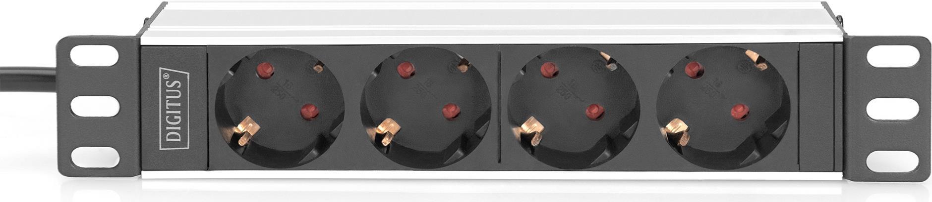 DIGITUS - Steckdosenleiste (Rack - einbaufähig) - Wechselstrom 250 V - 4000 Watt - Eingabe, Eingang CEE 7/4 - Ausgangsanschlüsse: 4 (4 x Spannung) - 1U - 25.4 cm (10") - 2 m Schnur