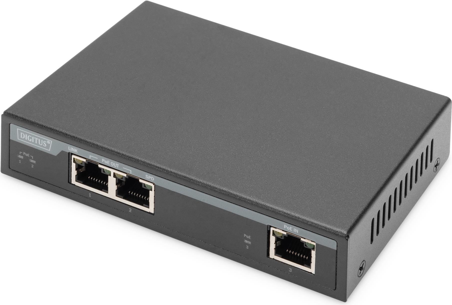 Digitus 2-Port Gigabit 4PPoE Extender - 802.3at - 60 W - Gigabit Ethernet - 10,100,1000 Mbit/s - IEEE 802.3af - IEEE 802.3at - Voll - Cat5e - Schwarz (DN-95127-1)