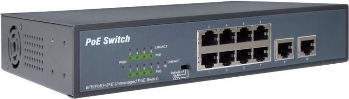 Fast Ethernet PoE Switch,8-port PoE + 2-port uplink, 120W PoE Budget