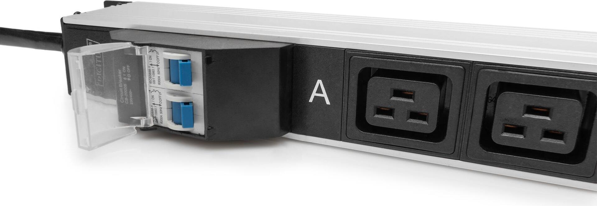 Die DIGITUS® Steckdosenleisten sind die perfekte Lösung für Ihren Netzwerk- oder Serverschrank. Hinsichtlich der Stromverteilung erfüllt die PDU Anforderungen vieler Anwendungen in der IT, Netzwerktechnik und Labore. Die einzelnen C13 und C19 - Ausgänge sind mit einem Ausziehschutz ausgestattet. Sie ist für den vertikalen Einbau konzipiert, dies spart Höheneinheiten und bietet mehr Platz für weitere Geräte. Die Steckdosenleiste mit 28 Ausgängen verfügt über exzellente physikalische Eigenschaften und ist für eine Leistung von bis zu 8.000 W (250VAC / 32A) ausgelegt, wodurch bei entsprechender Belastung die beste Performance erzielt werden kann.