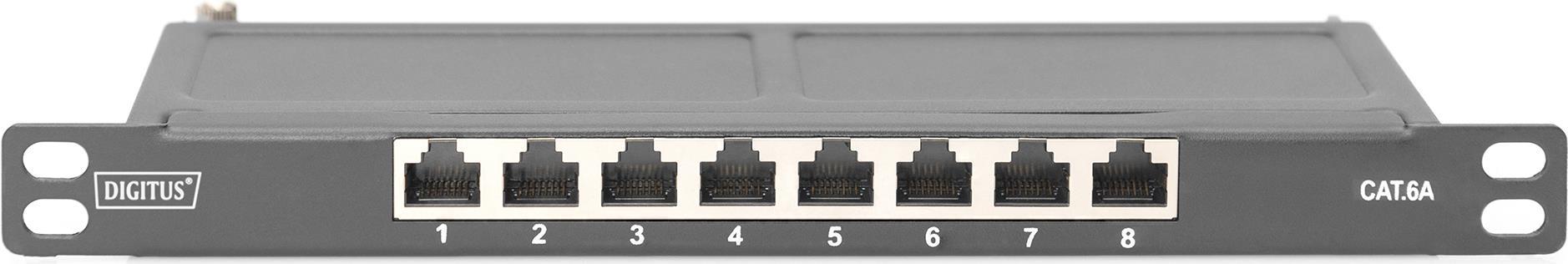 DIGITUS - Patch Panel - CAT 6a, abgeschirmt - geeignet für Wandmontage, Rack montierbar - CAT 6a - RJ-45 X 8 - Schwarz, RAL 9005 - 0,5U - 25,4 cm (10") (DN-91608S-SL-EA)