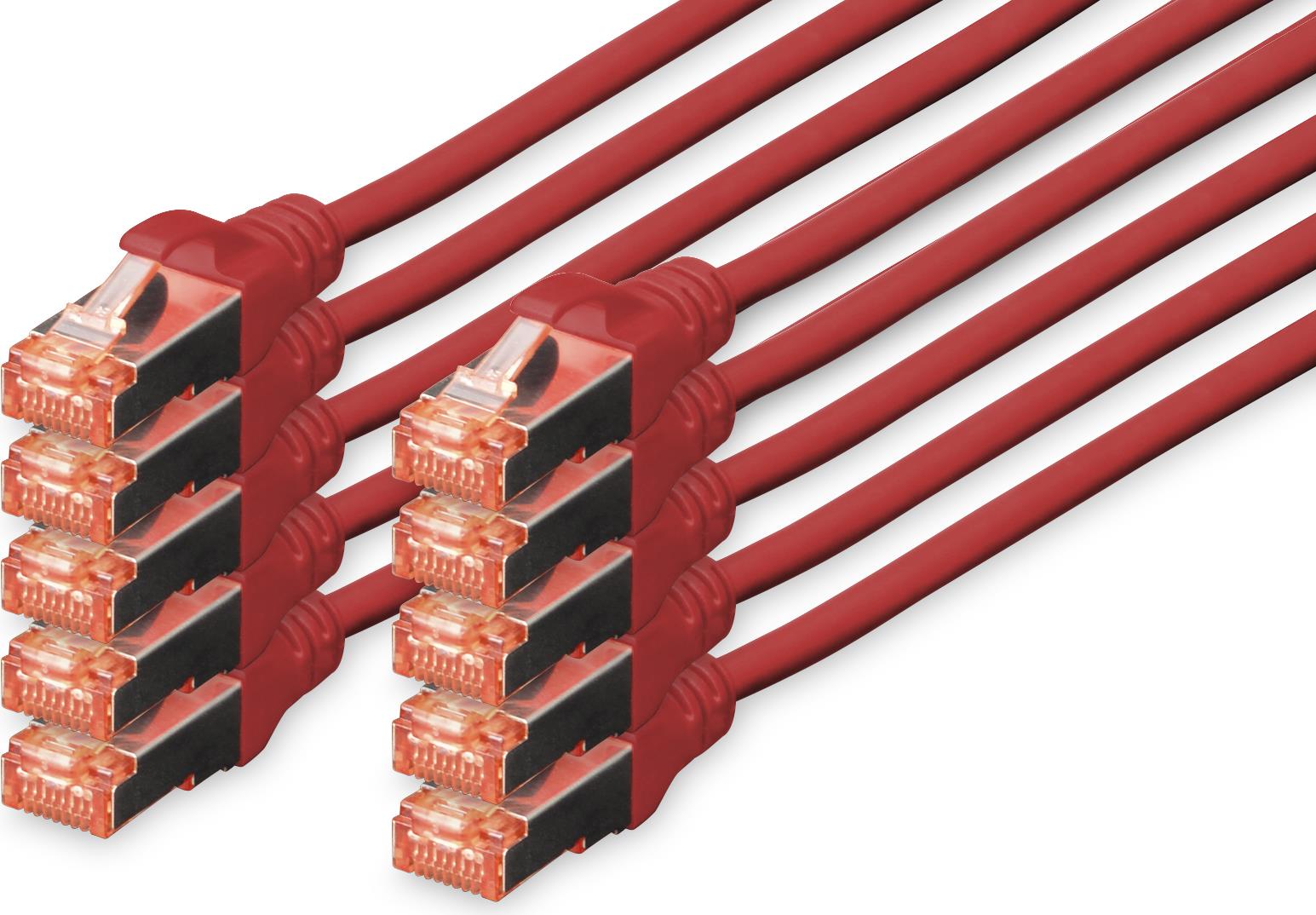 DIGITUS Professional - Patch-Kabel - RJ-45 (M) bis RJ-45 (M) - 50cm - SFTP, PiMF - CAT 6e - IEEE 802,3 - halogenfrei, geformt, ohne Haken - Rot (Packung mit 10) (DK-1644-005-R-10)