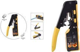 Die DIGITUS® Multi Modulare Crimpzange - Pass through ermöglicht ein schnelles und einfaches Crimpen verschiedenster Modularstecker. Erhöhen Sie Ihre Leistungsfähigkeit durch die Kombination der Funktionen verschiedener Tools. Durch den vorhandenen Kabelschneider und Abisolierer ist sie ein besonders praktisches Werkzeug, welches in keinem Bestand fehlen sollte.