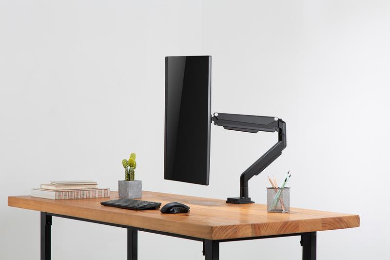Mit der universellen Monitorhalterung von DIGITUS® können Sie einen Monitor der Größen 15" - 32" bequem per Klemmbefestigung am Schreibtisch befestigen. Die Quick-Release-Funktion erleichtert Ihnen zudem die Installation des Monitors. Die VESA-Halterung wird ganz einfach in die entsprechende Aufnahme geschoben und rastet automatisch ein. Ohne großen Aufwand richten Sie den Monitor nach Ihren Bedürfnissen aus und können diesen schwenken, neigen oder den Monitor selbst drehen z. B. für Hochformat-Monitore. Die Unterstützung der integrierten Gasdruckfeder erleichtert Ihnen die Höhenverstellung des Monitors. Zusätzlich lassen sich die Kabel der Monitore ordentlich durch die mitgelieferten Kabelführungen verlegen. Tun Sie sich und Ihrer Gesundheit etwas Gutes, indem Sie den Monitor optimal an Ihren Körper und Ihre Sitzposition anpassen.