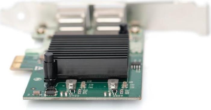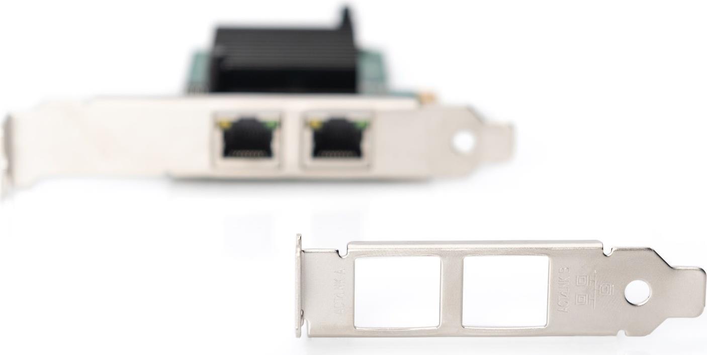 Die DIGITUS® PCI Express Dual-Port Gigabit Netzwerkkarte mit integriertem Intel Chipsatz bietet die Möglichkeit, über einen einzigen PCI-Steckplatz zwei Gigabit-Ports für einen Server oder eine Workstation zur Verfügung zu stellen. Jeder Port ist vollständig nach den IEEE802.3/u/ab Standards kompatibel und bietet einen vollwertigen Gigabit-Anschluss. Neben der Unterstützung der IPv4 und IPv6 Protokolle unterstützt die Karte Jumbo Frames sowie Layer 2 Funktionen . Durch die vielfältigen Konfigurationsmöglichkeiten ist die Karte ideal für die Nutzung von virtuellen Maschinen oder zum Aufbau eines Routers / einer Firewall geeignet. Das im Lieferumfang enthaltene Low Profile Slotblech bietet zudem die Möglichkeit, die Karte auch in kompakten Computergehäusen zu integrieren, in denen keine Standard-Slotbleche verwendet werden können.