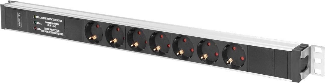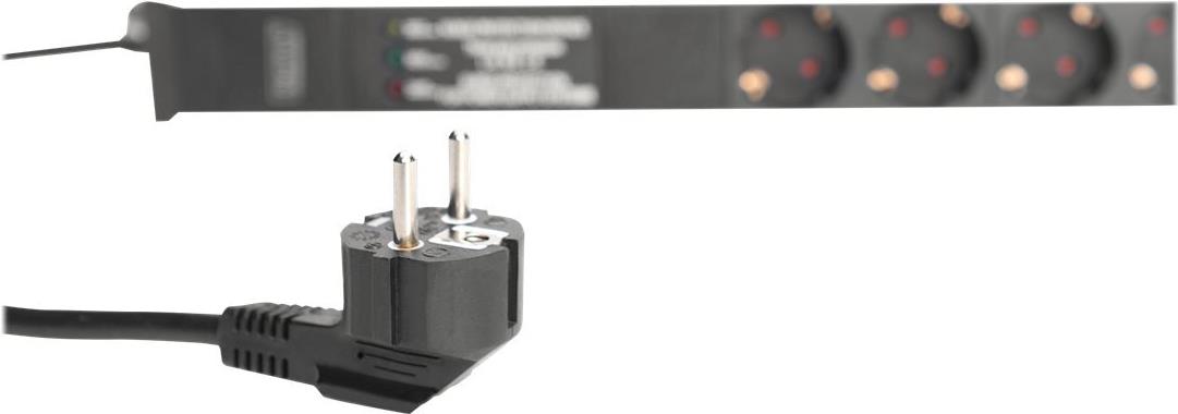 DIGITUS Professional DN-95412 - Steckdosenleiste (Rack - einbaufähig) - Wechselstrom 220-240 V - 4000 Watt - Eingabe, Eingang CEE 7/7 - Ausgangsanschlüsse: 7 (CEE 7/7) - 1U - 48.3 cm (19") - 2 m