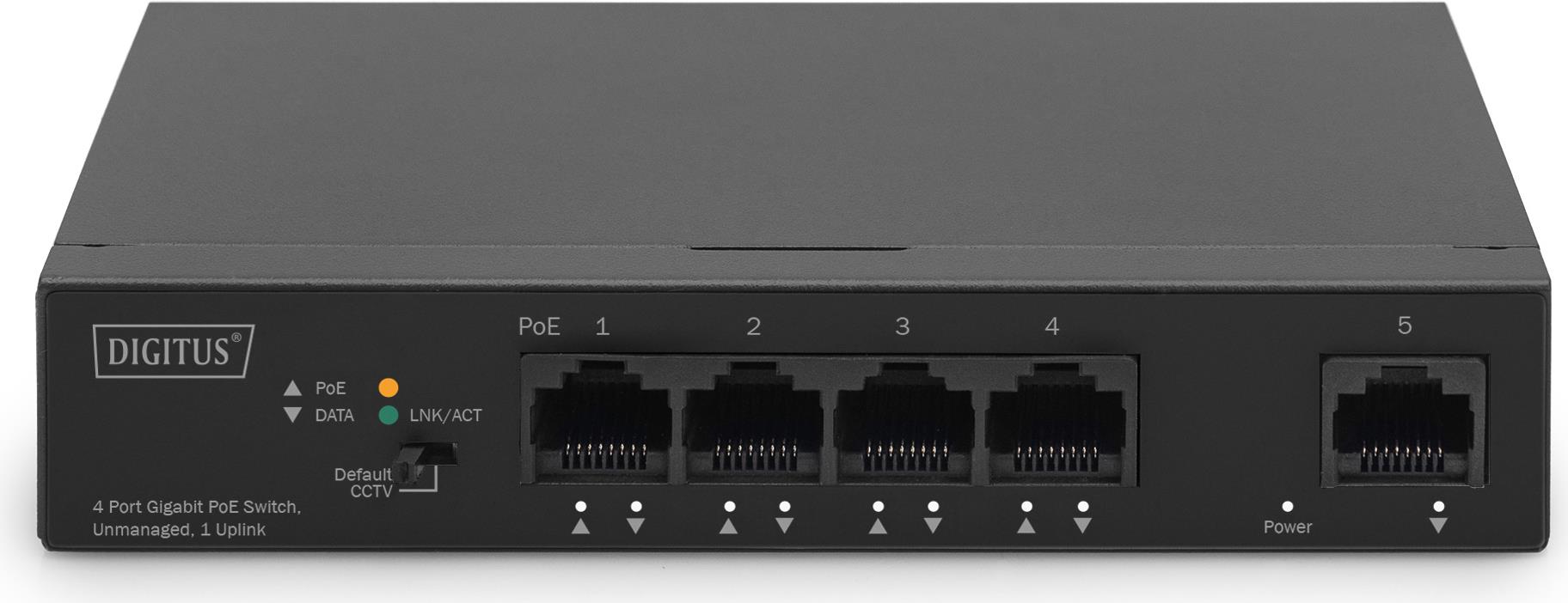 Digitus Gigabit Ethernet PoE Switch 4-port PoE + 1-port uplink - 60W PoE Budget (DN-95330-1)