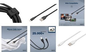 Zuverlässige und einfache Verbindung zu ihren Lightning Geräten mit Ihrem PC dank dem weichen und flexiblen Silikon-Kabel. Datenübertragungsrate von 480 Mbits/s zum Synchronisieren, zur Datenübertragung und einer Power-Delivery-Spezifikation von 12W zum Laden.