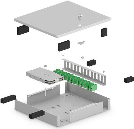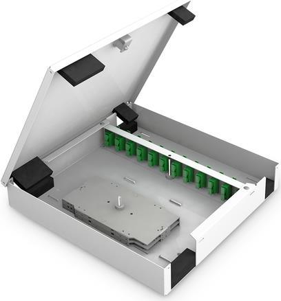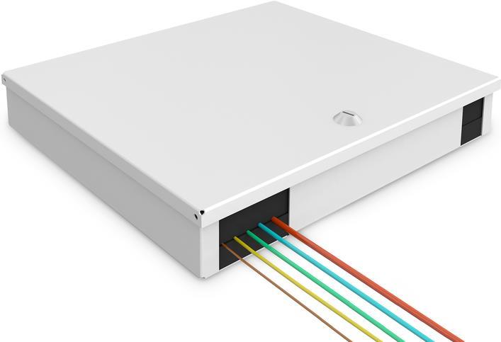 Die Glasfaser Unibox ist eine robuste und kompakte Spleißbox zur Wandmontage. Mit separat erhältlichen Kupplungshalterungen, welche in Sekunden montiert werden können, lässt sich die Box individuell je nach Bedarf mit Kupplungen, Faserpigtails und Kabeln bestücken. Anwendungsgebiete sind u .a. Tele- und Datenkommunikationsanwendungen im Innenbereich.