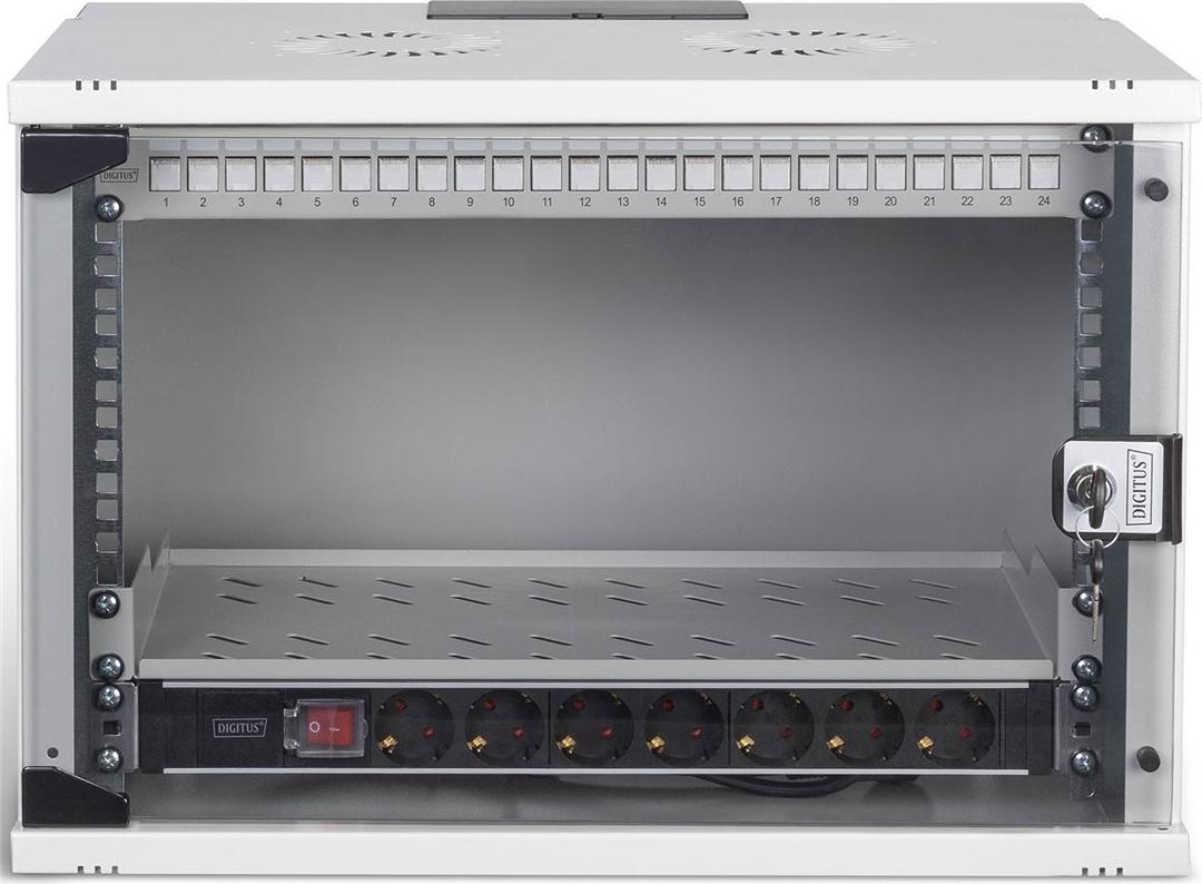Ob Privatbereich, Büro oder bei Unterverteilungen mit geringen Platzverhältnissen: Mit den kompakten 483 mm (19)-Lösungen der SOHO Pro Serie installieren Sie ihr Netzwerk, wo sie es möchten. Die Montage erfolgt in wenigen Schritten und ist dank beiliegender Schritt-für-Schritt Anleitung kinderleicht. Erhältlich in vier Ausführungen von Höheneinheiten (4HE, 7HE, 9HE, 12HE) werden in diesen Netzwerk-Sets perfekt aufeinander abgestimmte DIGITUS Komponenten ergänzt, um schnell und einfach eine einsatztaugliche IT-Verkabelung zu gewährleisten. Der Netzwerkschrank sowie das jeweilige Zubehör (bspw. Switch, Patch Panel, Steckdosenleiste, Fachboden, Kabelführungspanel, Patchkabel, etc.) werden in einem kompakten Karton geliefert.
