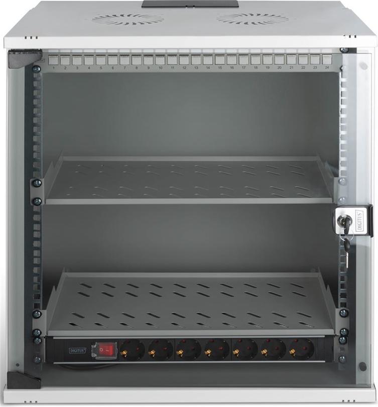 Ob Privatbereich, Büro oder bei Unterverteilungen mit geringen Platzverhältnissen: Mit den kompakten 483 mm (19)-Lösungen der SOHO Pro Serie installieren Sie ihr Netzwerk, wo sie es möchten. Die Montage erfolgt in wenigen Schritten und ist dank beiliegender Schritt-für-Schritt Anleitung kinderleicht. Erhältlich in vier Ausführungen von Höheneinheiten (4HE, 7HE, 9HE, 12HE) werden in diesen Netzwerk-Sets perfekt aufeinander abgestimmte DIGITUS Komponenten ergänzt, um schnell und einfach eine einsatztaugliche IT-Verkabelung zu gewährleisten. Der Netzwerkschrank sowie das jeweilige Zubehör (bspw. Switch, Patch Panel, Steckdosenleiste, Fachboden, Kabelführungspanel, Patchkabel, etc.) werden in einem kompakten Karton geliefert.