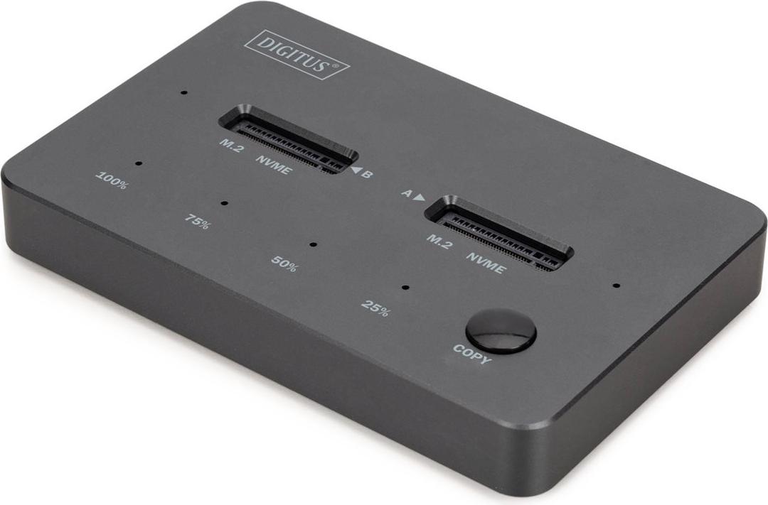 Die DIGITUS® Dual NVMe Docking Station DA-71545-1 bietet eine leistungsstarke Speicherlösung für IT-Profis und Enthusiasten. Mit Platz für zwei M.2 NVMe SSDs (bis zu 4 TB pro Slot) ermöglicht sie Hochgeschwindigkeits-Datenübertragungen und eine integrierte Offline-Klonfunktion, die eine einfache Duplikation von Datenträgern per Knopfdruck ermöglicht.