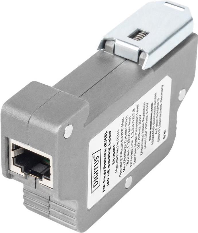 DIGITUS DN-95421 - PoE-Überspannungsschutz (DIN-Schienenmontage möglich) - Ausgangsanschlüsse: 1 - Grau (DN-95421)